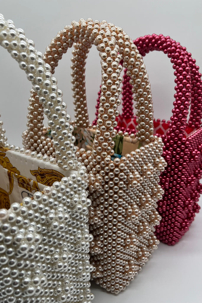 You like to sparkle in your customized Cinderella bag? I design and create your individually colored pearl bag with your favorite lining upon request. (Lead time: 4 weeks)
