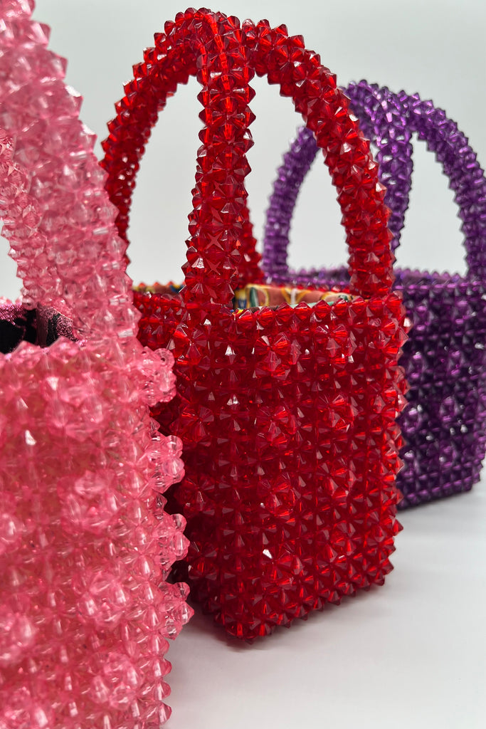 The small crystal bag features two beaded top handles. A delicate lining with an inside pocket sewn of unique Italian fabrics makes your Crystal bag shine and a sparkling treasure 🔮